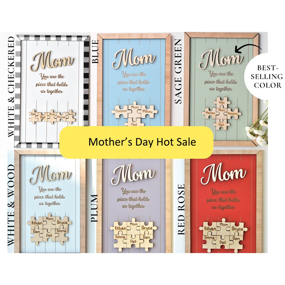Mom You Are The Piece That Holds Us Together Wooden Puzzle Piece Mother's Day Sign